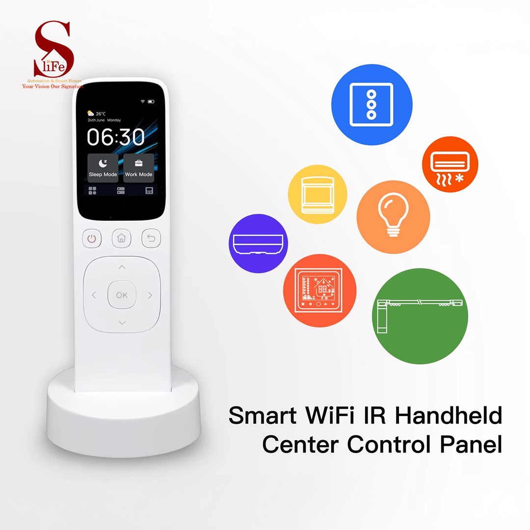 Take control of your home or villa with our Handheld Smart Remote Controller. Featuring a sleek touch screen, this central control switch allows you to manage lighting, climate, security, and more with just a tap. Designed for convenience and ease of use, it’s the perfect addition to any smart home or luxury villa. Simplify your life and enjoy seamless automation at your fingertips.